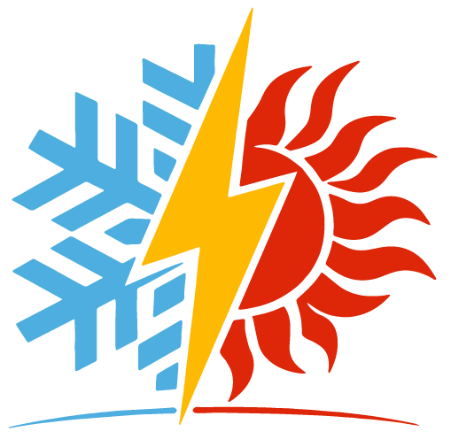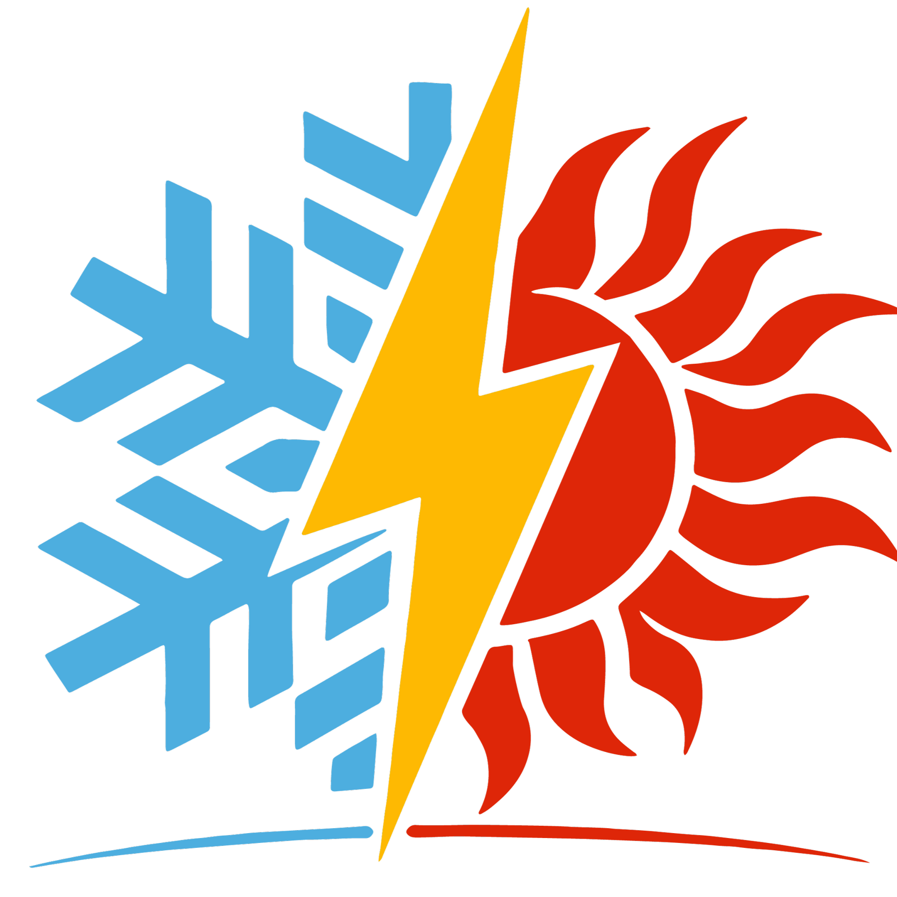 Icon of a blue snowflake and a red sun with a yellow lightning bolt in the center, representing air conditioning, refrigeration, and electrical services.